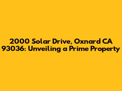 2000 Solar Drive, Oxnard: Your Guide To A Prime Location