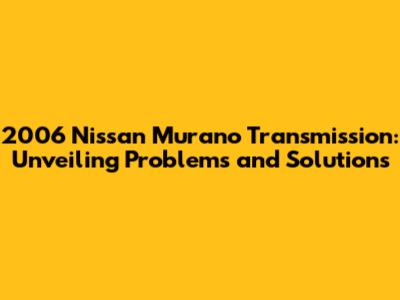 2006 Nissan Murano Transmission: Issues & Fixes