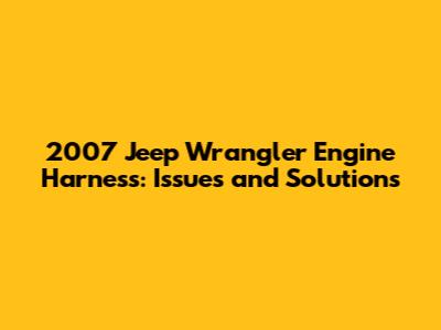 2007 Jeep Wrangler Engine Harness: Issues And Solutions