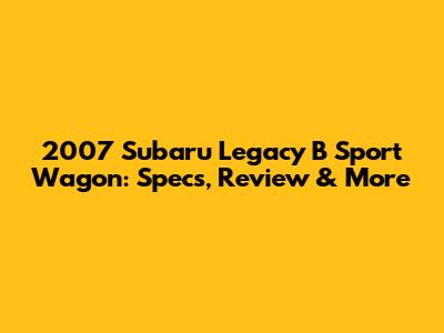 2007 Subaru Legacy B Sport Wagon: Specs, Review & More