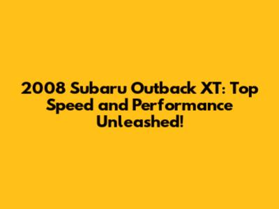 2008 Subaru Outback XT: Speed, Performance, And More!