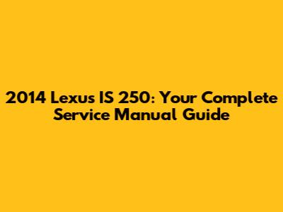 2014 Lexus IS 250: Your Complete Service Manual Guide