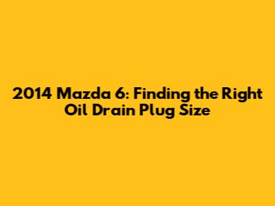 Hey guys! If you're the proud owner of a 2014 Mazda 6 and you're planning to tackle an oil change yourself, you're in the right place. One of the most common questions that pop up is, "What's the correct oil drain plug size for my car?" Getting this right is super important – you don't want any leaks or, worse, damage to your oil pan. Let’s dive into the specifics to ensure your oil change goes off without a hitch.