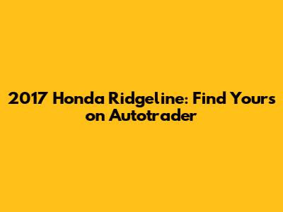 First, head over to Autotrader's website (www.autotrader.com). In the search bar, enter āHonda Ridgelineā as the make and model. Then, specify ā2017ā as the year. You can also enter your zip code to see listings in your local area. Once you hit the search button, you'll be presented with a list of available 2017 Honda Ridgelines.