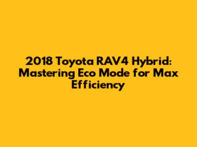 2018 Toyota RAV4 Hybrid: Mastering Eco Mode For Max Efficiency