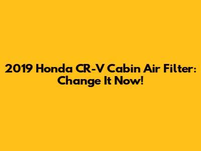 2019 Honda CR-V Cabin Air Filter: Change It Now!