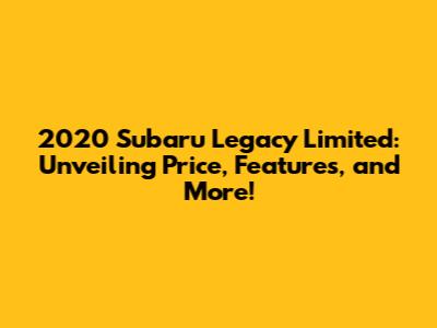 Hey car enthusiasts! Today, we're diving deep into the world of the 2020 Subaru Legacy Limited, a vehicle that has captured the hearts of many with its blend of practicality, comfort, and Subaru's renowned all-wheel-drive capability. We'll be taking a close look at the 2020 Subaru Legacy Limited price, its features, and everything else you need to know before making a decision. Ready to roll?