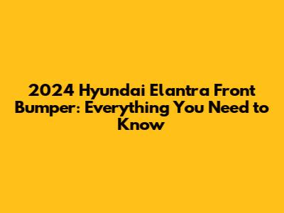 2024 Hyundai Elantra Front Bumper: Everything You Need To Know