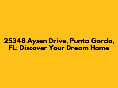 Hey guys! Are you on the hunt for the perfect Florida home? Let's dive into everything you need to know about 25348 Aysen Drive, Punta Gorda, FL. This isn't just about a house; it's about finding a place where you can truly live your best life. We'll cover the property itself, the awesome community surrounding it, and all the essential details to help you make an informed decision. So, grab a comfy seat and let's get started!