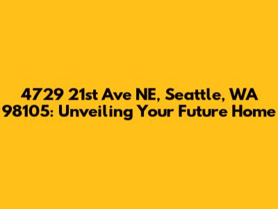Hey there, future homeowner! Let's dive into the details of a truly special property located at 4729 21st Ave NE, Seattle, WA 98105. This address isn't just a string of numbers and letters; it's a potential doorway to your dream home in one of Seattle's most desirable neighborhoods. We're talking about a place that's close to everything, offering a fantastic lifestyle, and brimming with potential. In this article, we will unpack everything you need to know about 4729 21st Ave NE, from its location and the surrounding community to its potential for renovation and investment. Whether you're a first-time homebuyer, looking to upgrade, or seeking an investment opportunity, understanding the specifics of this address is crucial. This isn't just about the house itself; it's about the lifestyle, the community, and the future you can build here. So, grab a coffee, get comfy, and let's explore why 4729 21st Ave NE could be the perfect place for you. We'll explore the neighborhood, discuss the property's potential, and give you a comprehensive understanding of what it means to own a piece of real estate in this vibrant Seattle locale.