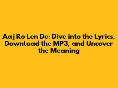 Aaj Ro Len De: Lyrics, MP3 Download, And Meaning