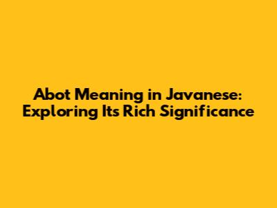 Abot Meaning In Javanese: Exploring Its Rich Significance