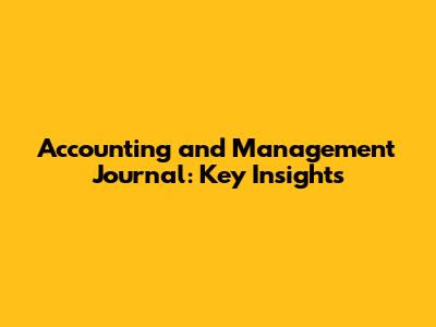 Accounting & Management Insights: Journal Highlights