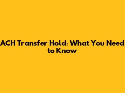 ACH Transfer Hold: What You Need To Know