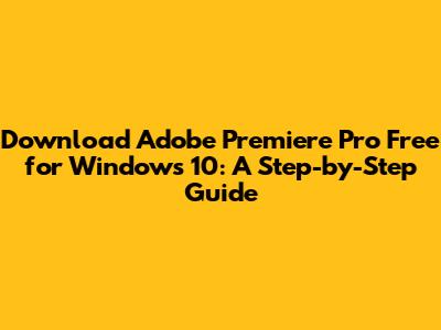 Download Adobe Premiere Pro Free for Windows 10: A Step-by-Step Guide