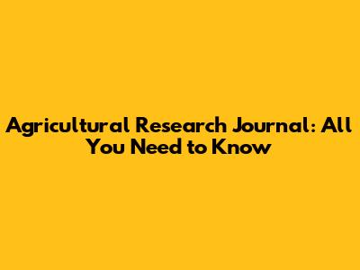 Agricultural Research Journal: All You Need To Know