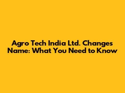 Agro Tech India Ltd. Changes Name: What You Need To Know