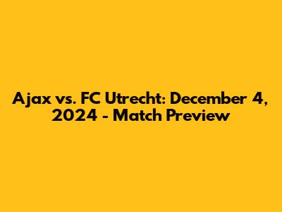 Ajax Vs. FC Utrecht: December 4, 2024 - Match Preview