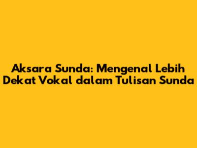 Bagaimana fungsi dan penggunaan vokal dalam Aksara Sunda? Vokal dalam Aksara Sunda memiliki fungsi yang sangat penting dalam membentuk kata dan kalimat. Setiap kata dalam bahasa Sunda pasti mengandung vokal, dan perubahan vokal dapat mengubah makna kata tersebut. Oleh karena itu, pemahaman yang tepat tentang vokal sangat penting untuk menghindari kesalahan dalam membaca dan menulis. Selain itu, vokal juga berperan dalam menentukan intonasi dan ritme bahasa Sunda. Dengan memahami fungsi vokal, kita dapat berkomunikasi dengan lebih efektif dan akurat dalam bahasa Sunda. Jadi, mari kita eksplorasi lebih lanjut bagaimana vokal digunakan dalam berbagai konteks dalam Aksara Sunda!