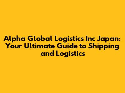 Hey there, logistics enthusiasts! Ever wondered how to navigate the complex world of shipping and logistics, especially when it comes to a country as unique and dynamic as Japan? Well, you're in luck! This article is your ultimate guide to Alpha Global Logistics Inc Japan. We'll dive deep into their services, explore what makes them tick, and arm you with the knowledge you need to make informed decisions about your shipping needs. So, grab a cup of coffee (or your favorite beverage), and let's get started on this exciting journey.