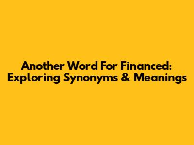 Another Word For Financed: Exploring Synonyms & Meanings