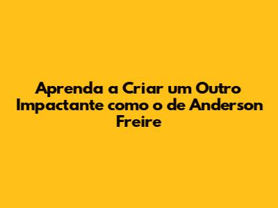Aprenda A Criar Um Outro Impactante Como O De Anderson Freire