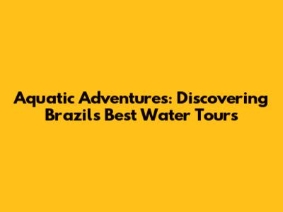 Aquatic Adventures: Discovering Brazil's Best Water Tours
