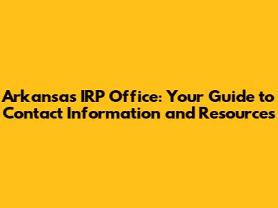 Arkansas IRP Office: Contact Info & Resources