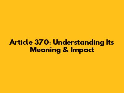 Article 370: Understanding Its Meaning & Impact