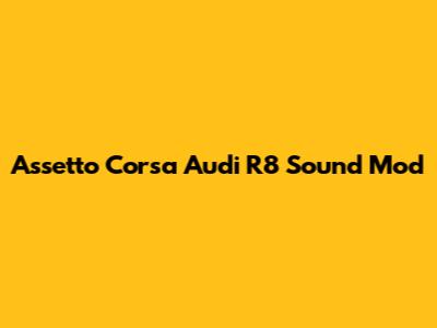 Hey guys! Today, we're diving deep into the heart-pounding world of Assetto Corsa and how to make your Audi R8 scream with the most realistic and immersive sound mods out there. If you're anything like me, you know that the sound of a car is half the experience, especially when you're tearing up the track in a virtual beast like the R8. So, let's get started and transform your racing sim into an auditory masterpiece!