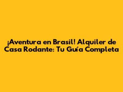 ¡Aventura En Brasil! Alquiler De Casa Rodante: Tu Guía Completa