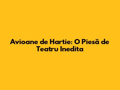 Avioane De Hartie: O Piesă De Teatru Inedita