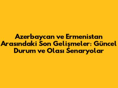 Azerbaycan Ve Ermenistan Arasındaki Son Gelişmeler