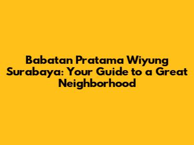 Babatan Pratama Wiyung Surabaya: Your Guide To A Great Neighborhood