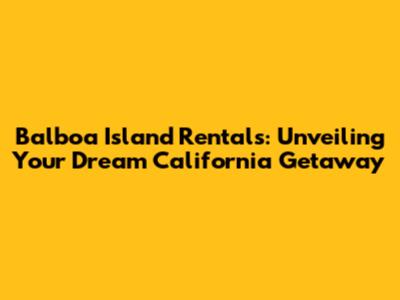 Balboa Island Rentals: Your Dream California Getaway
