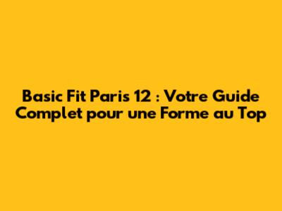 Basic Fit Paris 12: Votre Guide Complet
