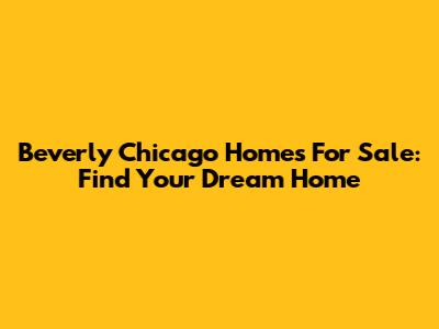 Beverly Chicago Homes For Sale: Find Your Dream Home