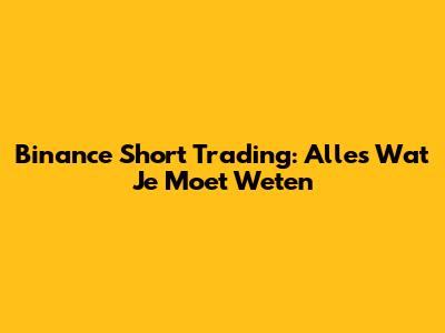 Binance Short Trading: Alles Wat Je Moet Weten