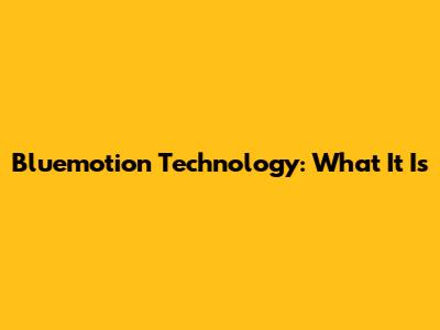 Bluemotion Technology: What It Is