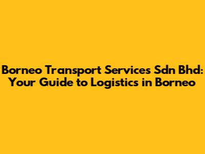 Hey guys! Ever wondered how to navigate the complex world of logistics in Borneo? Well, you’ve come to the right place. Borneo Transport Services Sdn Bhd is a major player in this field, and we're here to break down everything you need to know. From understanding the company's core services to exploring the challenges and opportunities within the Bornean logistics landscape, we've got you covered. So, let's dive in and explore how this company is making waves in the region!
