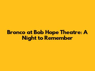 Bronco At Bob Hope Theatre: A Night To Remember
