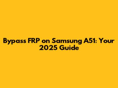Bypass FRP On Samsung A51: Your 2025 Guide