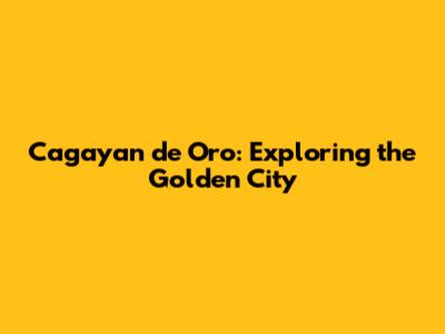 Cagayan De Oro: Exploring The Golden City