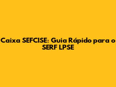 Caixa SEFCISE: Guia Rápido Para O SERF LPSE