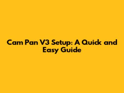 Cam Pan V3 Setup: A Quick And Easy Guide
