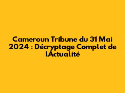 Cameroun Tribune: L'Actualité Du 31 Mai 2024 Décryptée
