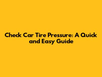 Check Car Tire Pressure: A Quick And Easy Guide