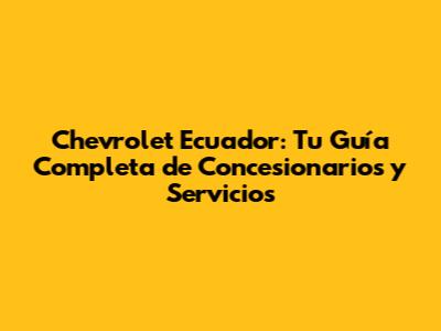 Chevrolet Ecuador: Tu Guía Completa De Concesionarios Y Servicios