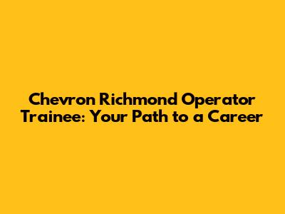 Chevron Richmond Operator Trainee: Your Path To A Career