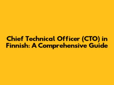 Chief Technical Officer (CTO) In Finnish: A Comprehensive Guide